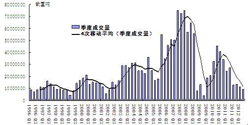 1. 1996-2012年全球新船訂單季度成交量走勢(shì)