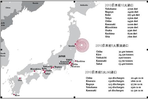 大地震發(fā)生后,日本立即關(guān)閉國內(nèi)所有港口,據(jù)英國勞氏統(tǒng)計,當(dāng)日日本因港口關(guān)閉造成的損失達34億美元。日本港口主要分布在南部地區(qū)和東南部,多數(shù)港口離震區(qū)較遠,沒有受到直接沖擊。目前,我們只知道位于震區(qū)的仙臺港遭遇毀滅性破壞,盡管該港口是日本比較重要的集裝箱、原油港口,但是對整個日本港口運營影響十分有限。