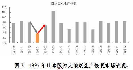 由此可見,無論是整個國家經(jīng)濟結(jié)構(gòu),災(zāi)害初評估,或受災(zāi)地區(qū)在國民經(jīng)濟中地位和對國民經(jīng)濟實際影響等角度,此次地震(海嘯)帶來的影響可能要弱于1995年阪神地震。同時,大家知道1995年阪神地震對生產(chǎn)的實際影響也是短期的,震后生產(chǎn)恢復(fù)非常迅速,并且某種程度上有效帶動本國經(jīng)濟繁榮。為此,我們認為此次地震危害對日本工業(yè)生產(chǎn)帶來的沖擊總體上較為有限。