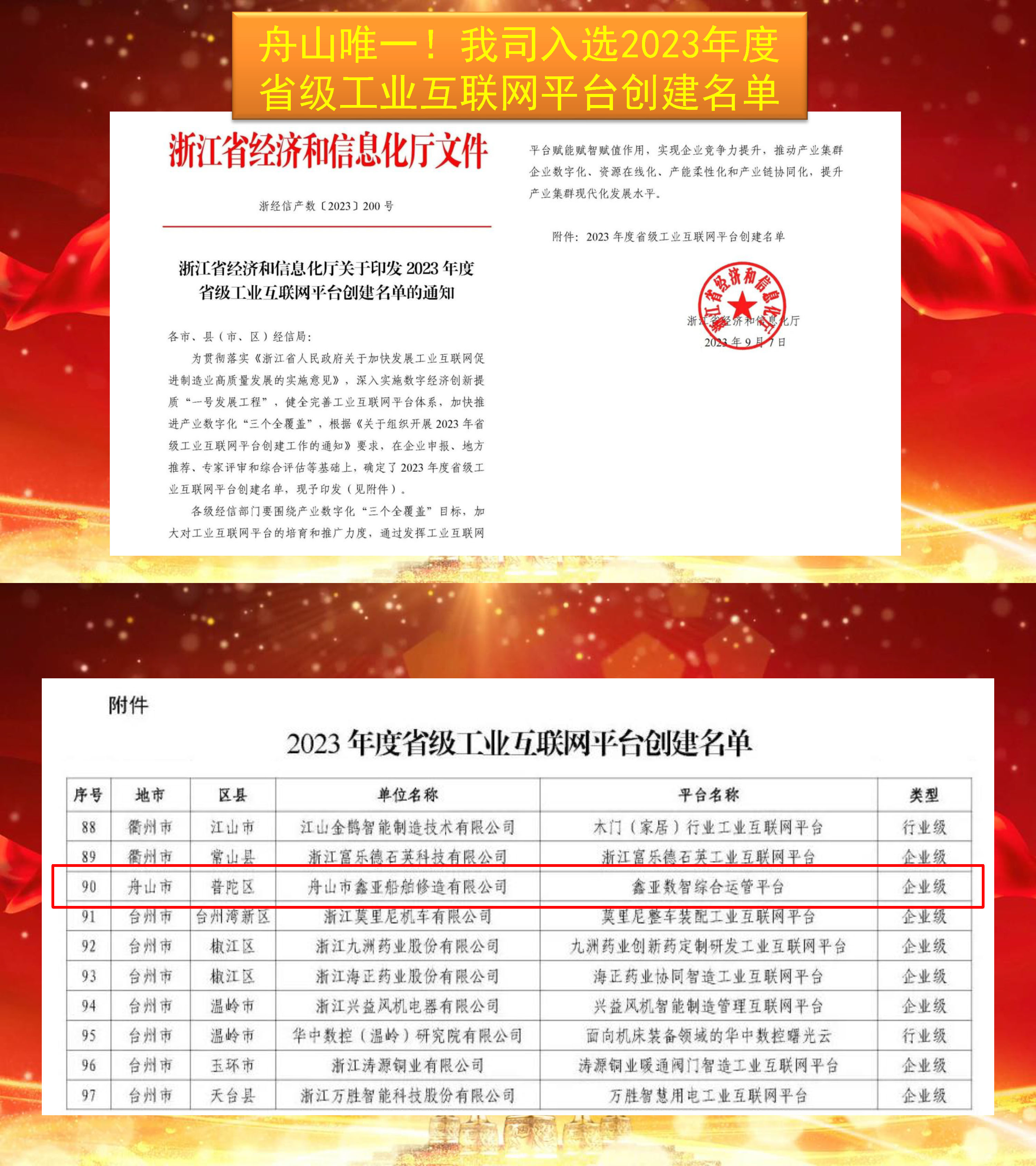 舟山唯一!我司入選省級工業(yè)互聯(lián)網(wǎng)平臺創(chuàng)建名單